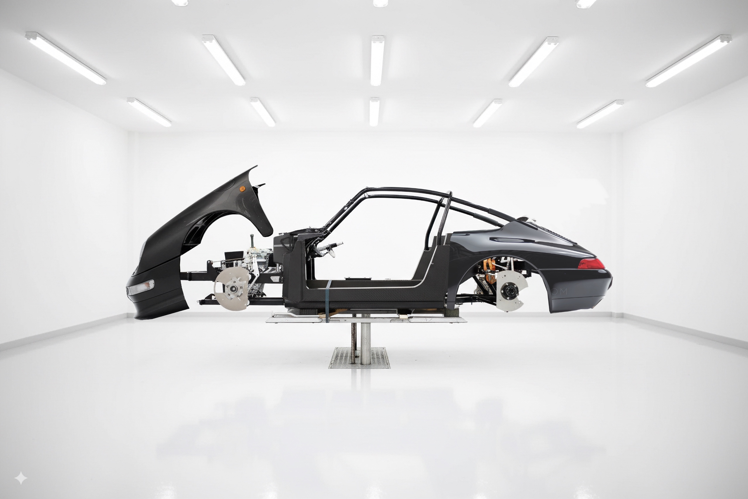 Bolt-on compatibility with original 993 body shell. Designed for timeless aesthetics and future-proof performance.