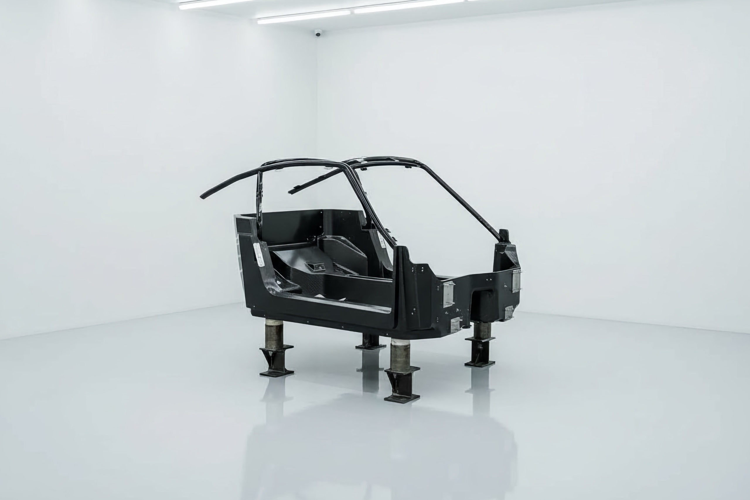 Structural Safety cage with integrated window frames. Designed to maintain original silhouette while exceeding modern safety standards.