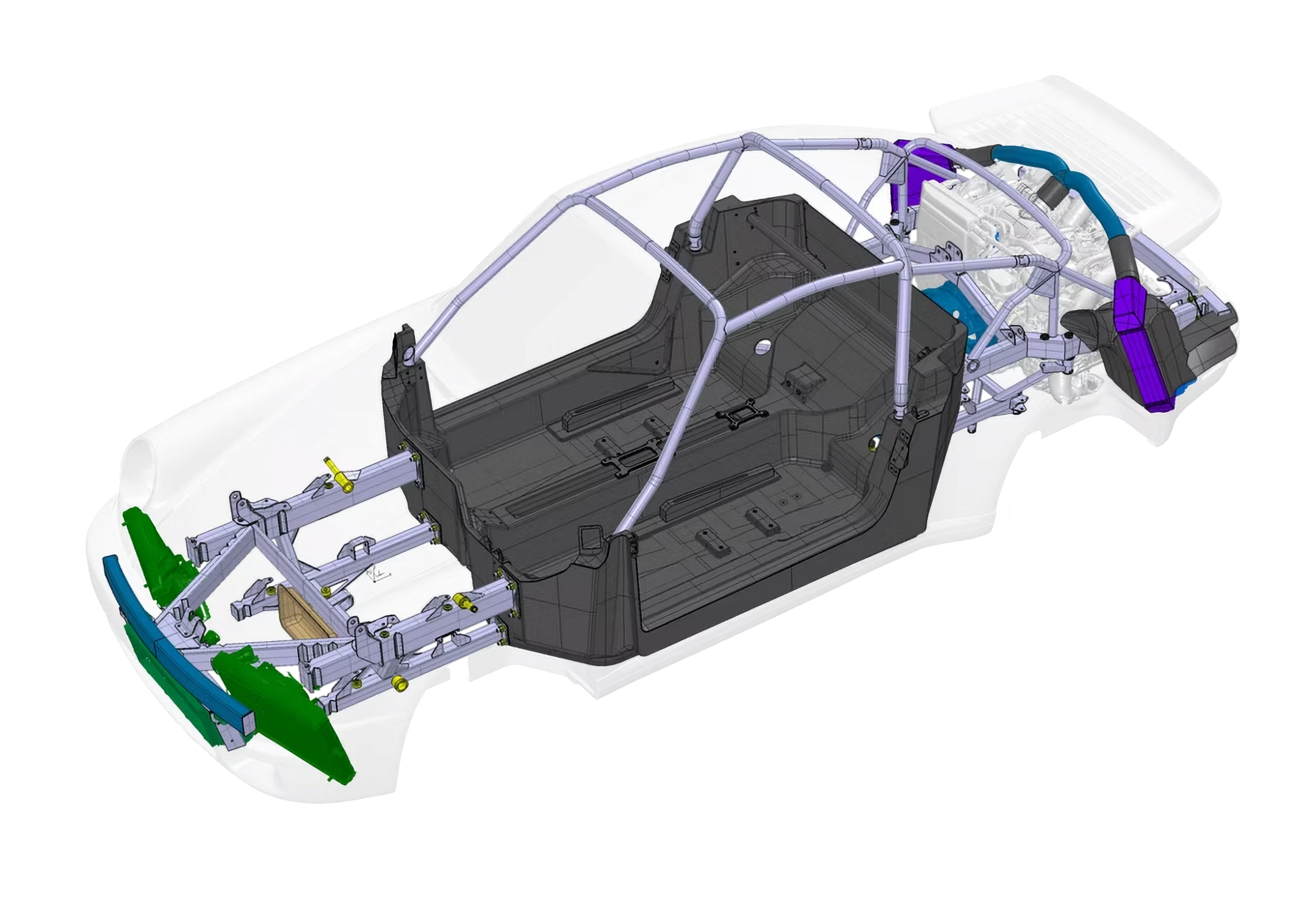 While the silhouette is timeless, the foundation of The Schöner is a radical departure from 1990s steel. This section documents our transition from the original Porsche 993 chassis to a state-of-the-art carbon fiber monocoque—a structure designed to handle the massive torsional stress of a 1,500 hp electric powertrain.